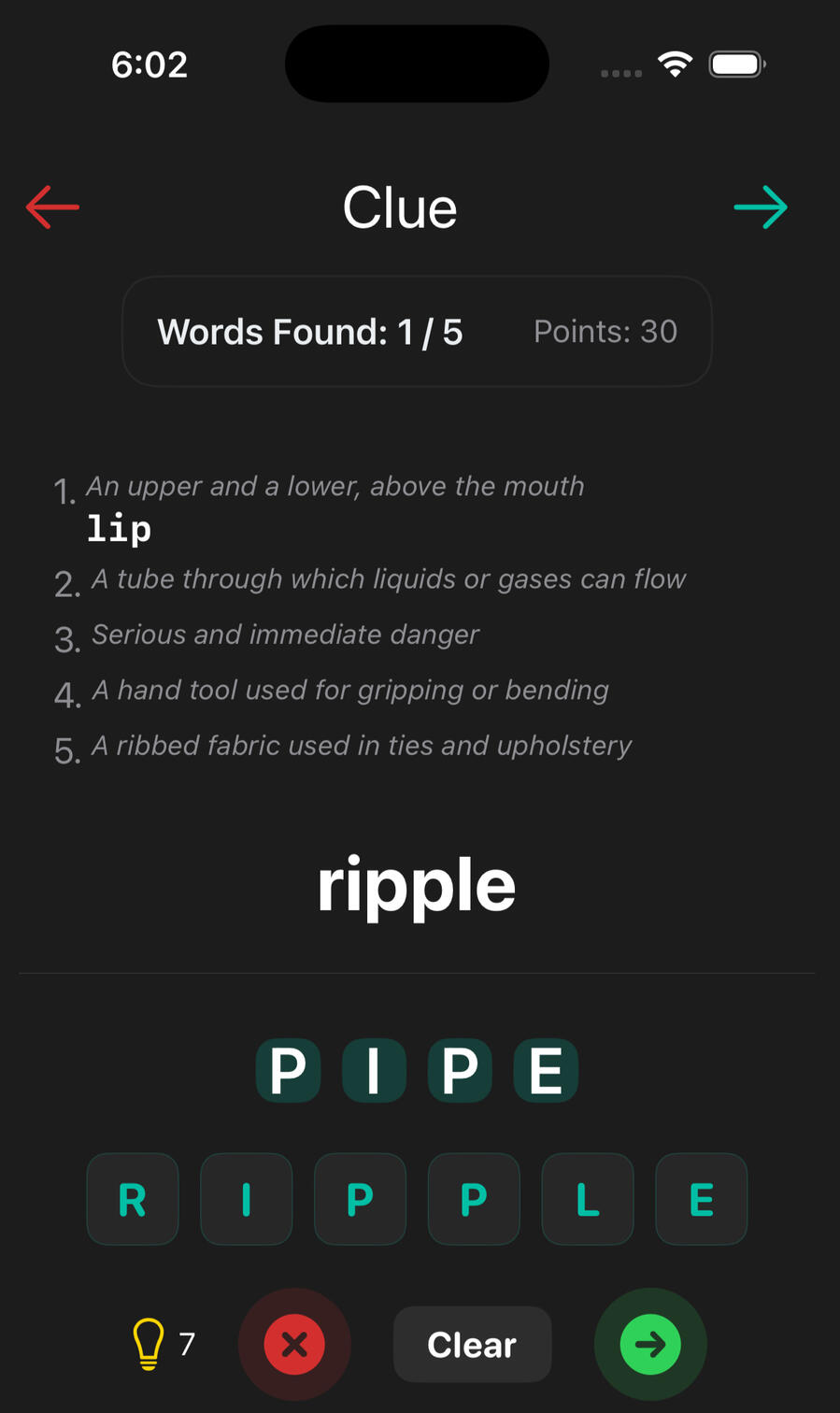 Challenge your mind, one word at a time. A fresh new take on the word game genre, featuring three unique modes — Extract, Shuffle, and Clue — that test your vocabulary, focus, and strategy.